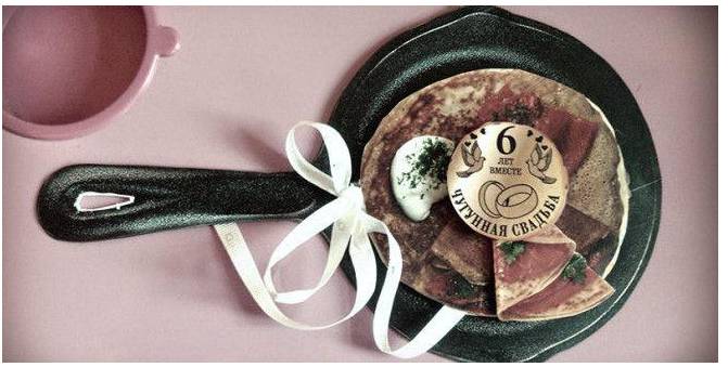 Шесть лет совместной жизни в народе называют чугунной свадьбой. К этой дате принято дарить чугунную посуду или предметы для украшения интерьера из чугуна. В настоящее время тяжелый металл в поделках можно заменить аналогом, похожим по внешнему виду на чугун.