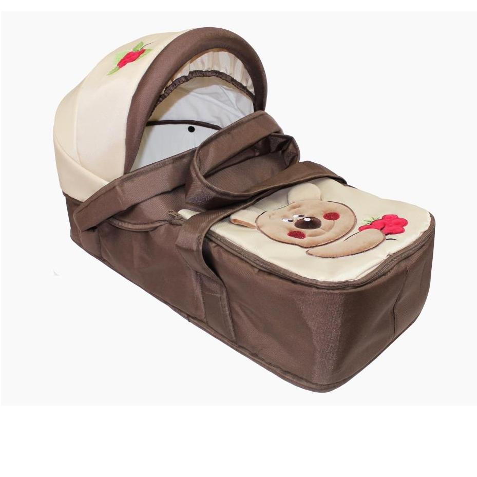 Самыми распространёнными являются переноски из материала с плотным дном, которые входят в комплект коляски-трансформера или продаются отдельно. С такими люльками удобно ездить в общественном транспорте, ходить по магазинам или в гости. Их вес около двух килограммов, поэтому в них легко носить младенца.