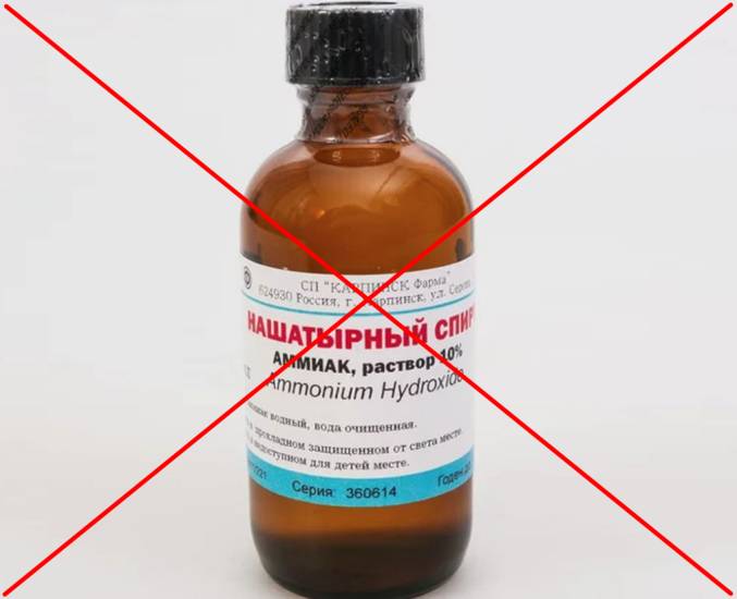 - пытаться привести в чувство ребёнка, упавшего в обморок, при помощи нашатырного спирта. Нашатырный спирт можно использовать на стадии предвестников обморочного состояния. Ребёнок, упавший в обморок, не сможет отшатнуться от едких паров препарата, а значит в дыхательные пути может попасть избыточное количество медикамента. Это может спровоцировать химический ожог слизистой оболочки, рефлекторный спазм дыхательных путей и остановку дыхания.
